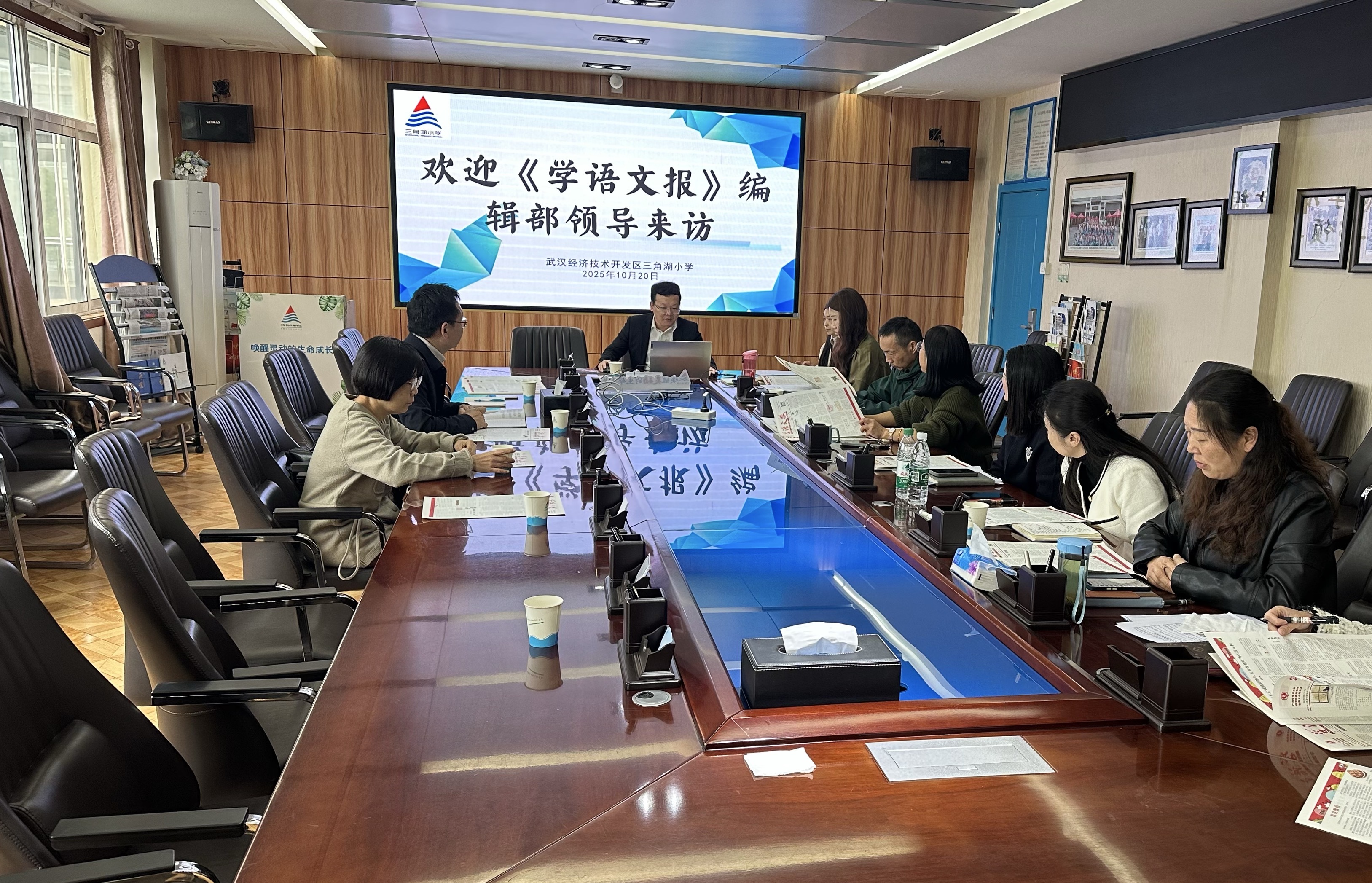 为进一步推进《学语文报》进校园,10月20日,江汉大学期刊社社长汪朝阳,《学语文报》编辑部主任王鹏,编辑谢畅、赵蔚走进三角湖小学,与一线语文教师开展了深入的研讨交流活动。三角湖小学书记朱凤江,校长贺小红,副校长郑青松、李丹等学校领导班子成员及部分一线语文教师参与了此次调研交流活动。